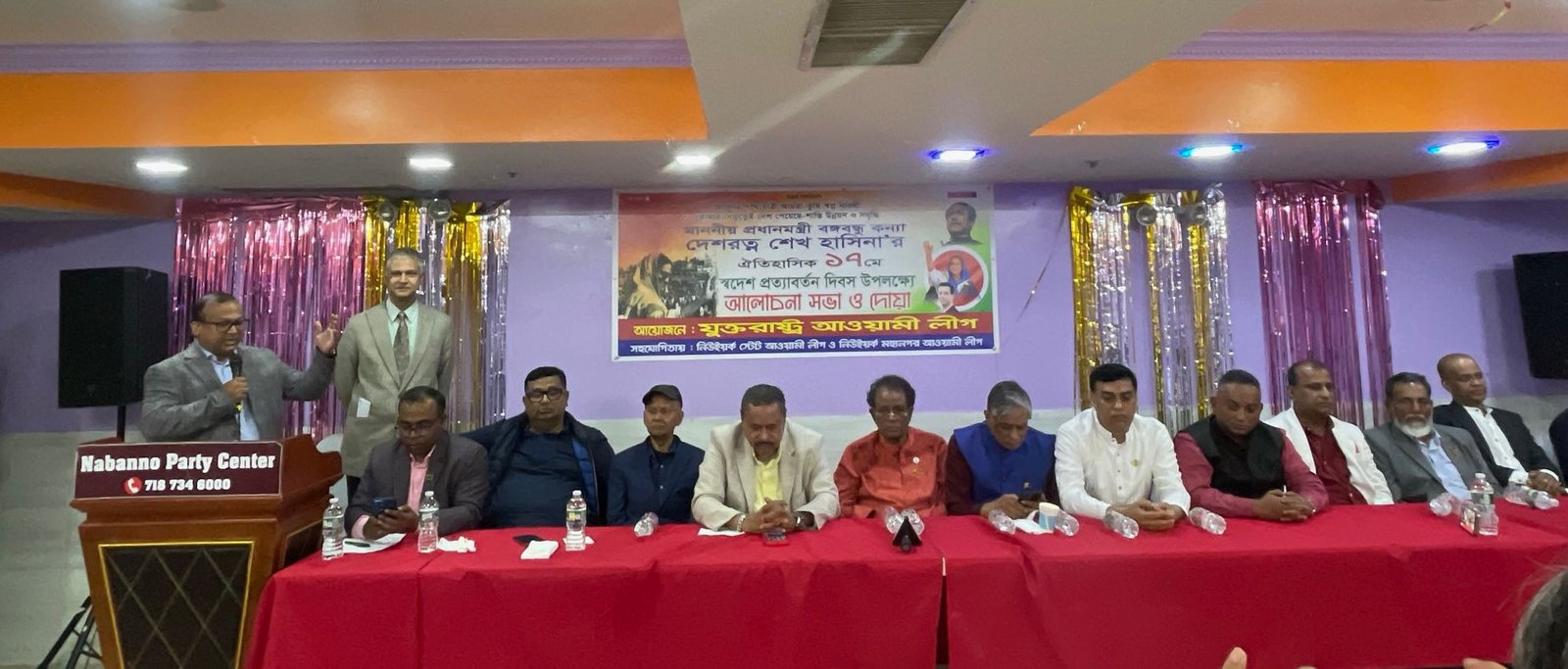 প্রধানমন্ত্রী শেখ হাসিনার স্বদেশ প্রত্যাবর্তন দিবস উপলক্ষে যুক্তরাষ্ট্র আওয়ামী লীগের উদ্যোগে ১৭ মে নিউইয়র্কের জ্যাকসন হাইটসে নবান্ন পার্টি সেন্টারে এক দোয়া ও আলোচনা সভা অনুষ্ঠিত হয়।
